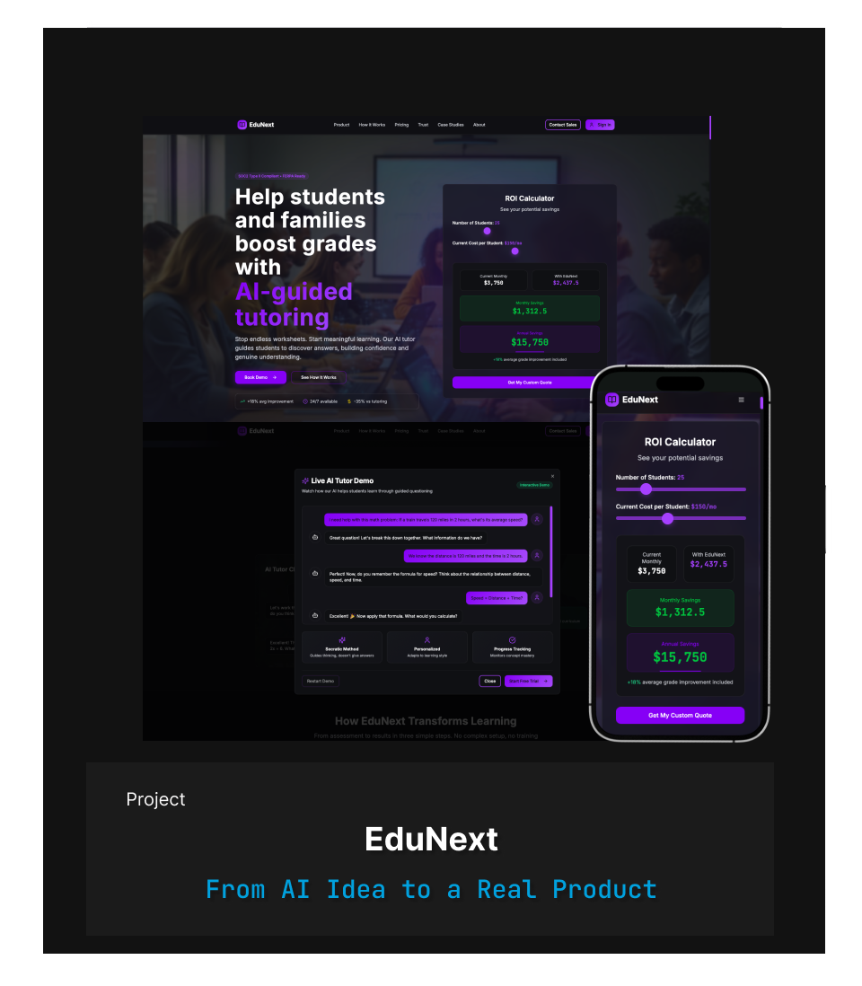 In 60 days, EduNext saw +383% more demos, –57% bounce rate, +276% engagement, and 4 investor leads (GA4, 7.8k sessions).